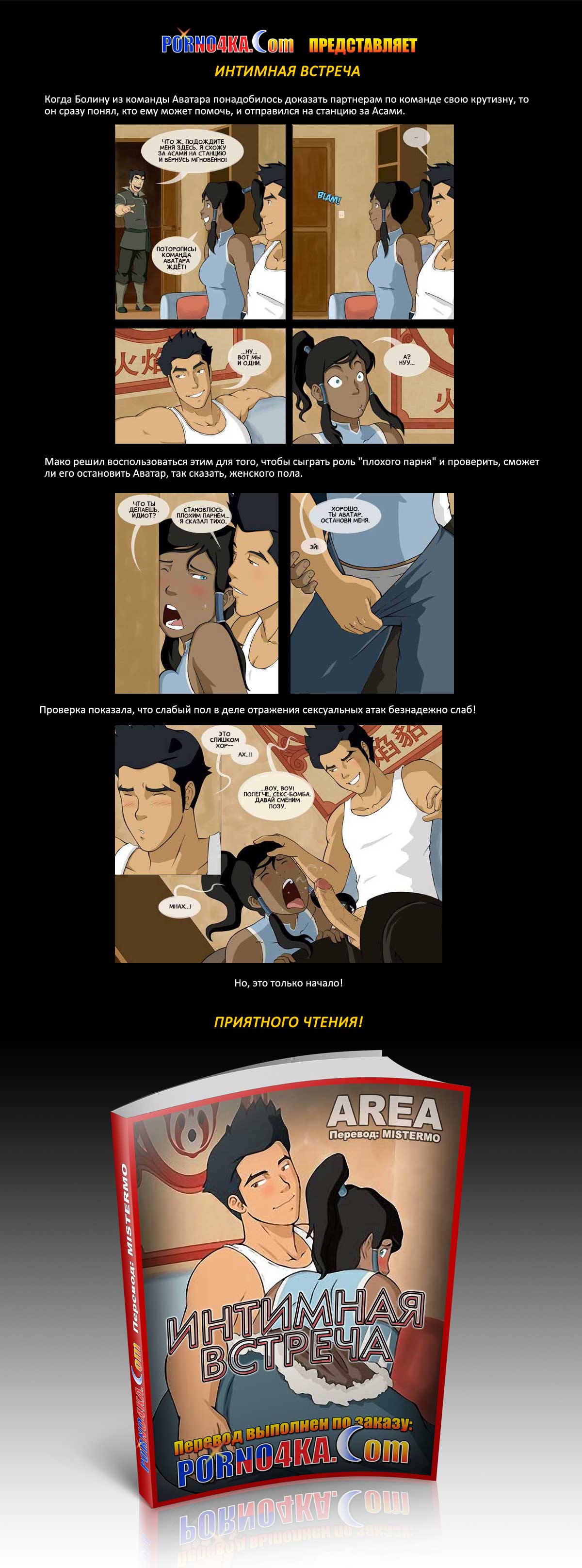 Когда Болину из команды Аватара понадобилось доказать партнерам по команде свою крутизну, то он сразу понял, кто ему может помочь, и отправился на станцию за Асами. Мако решил воспользоваться этим для того, чтобы сыграть роль «плохого парня» и проверить, сможет ли его остановить Аватар, так сказать, женского пола. Проверка показала, что слабый пол в деле отражения сексуальных атак безнадежно слаб… Но, это только начало!