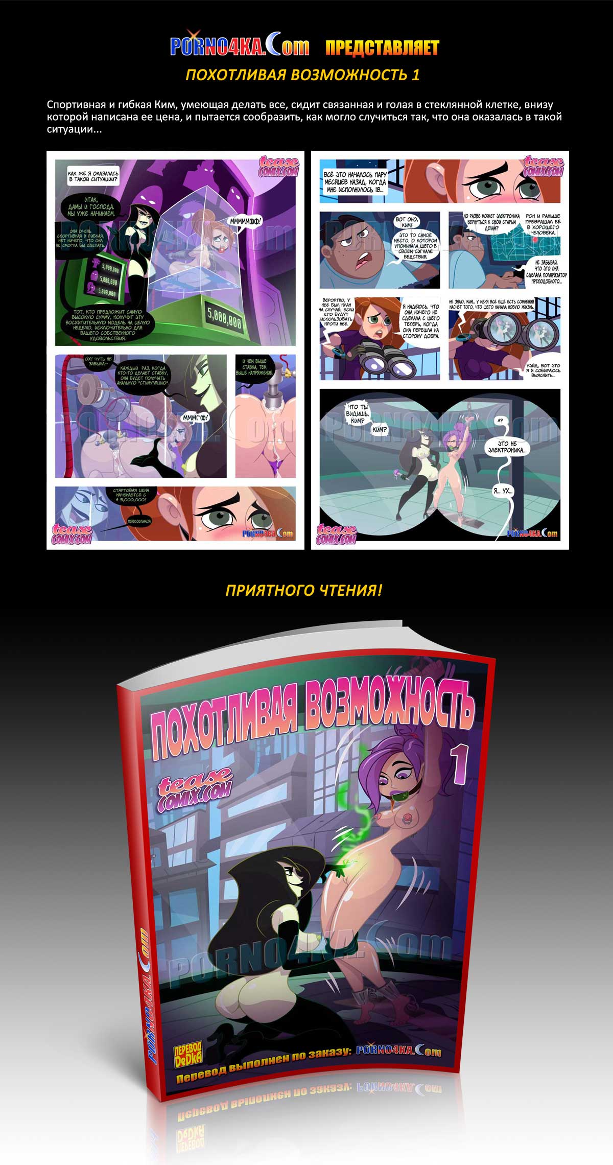 Спортивная и гибкая Ким, умеющая делать все, сидит связанная и голая в стеклянной клетке, внизу которой написана ее цена, и пытается сообразить, как могло случиться так, что она оказалась в такой ситуации…