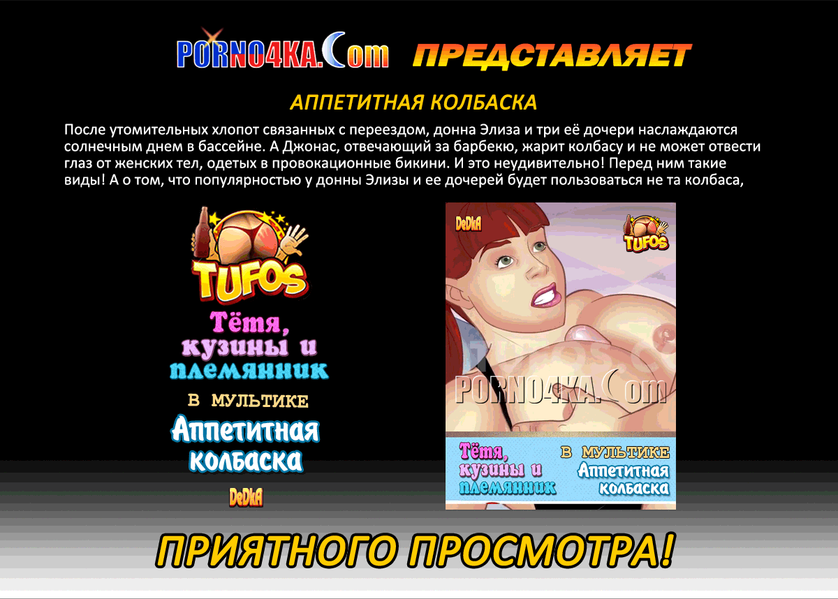 Порно мультфильм «Тетя, кузины и племянник. Аппетитная колбаска».